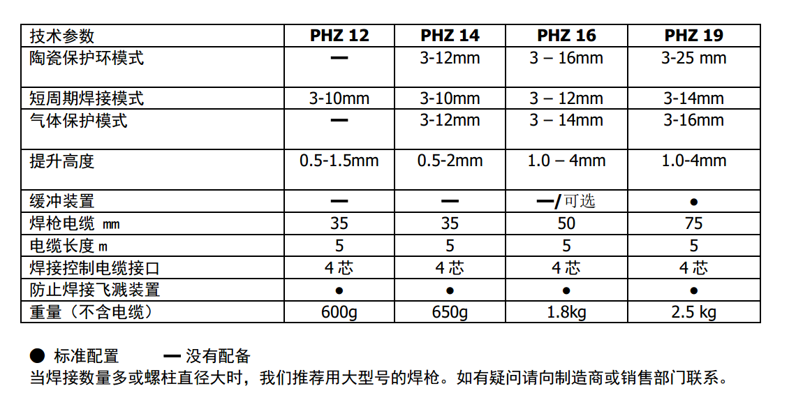 PHZ系列螺柱焊槍技術參數(shù)